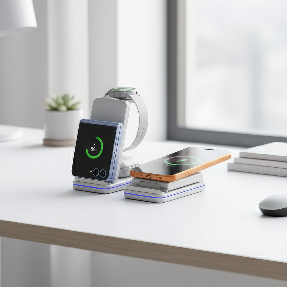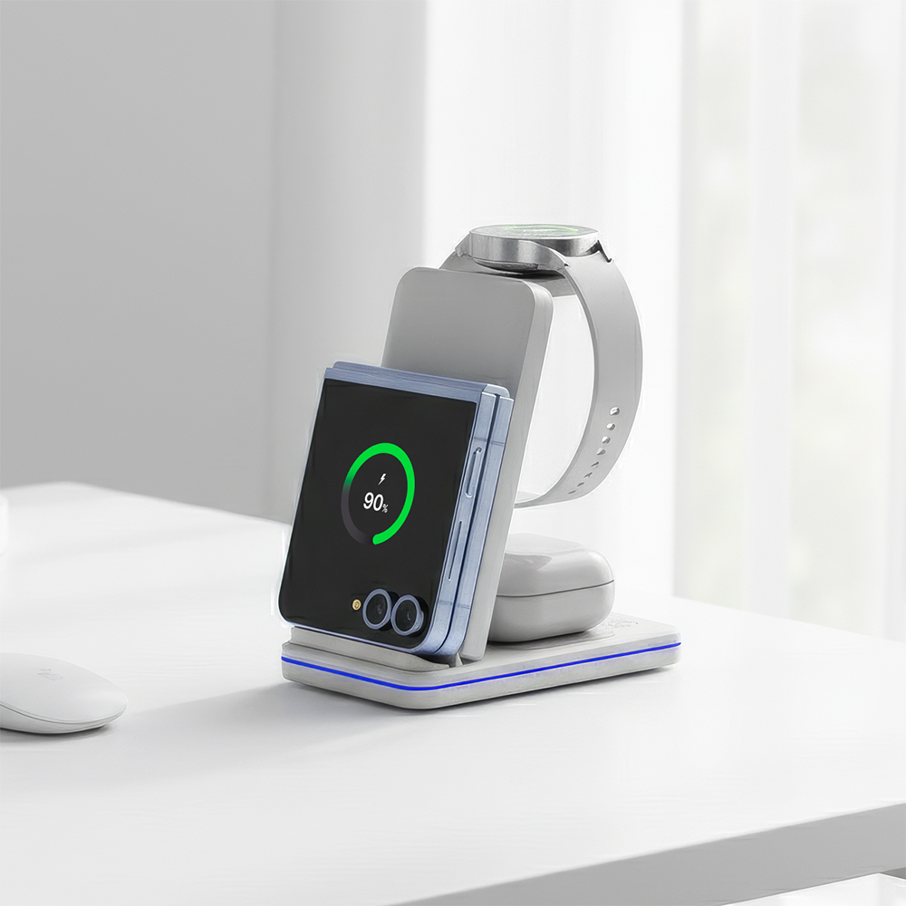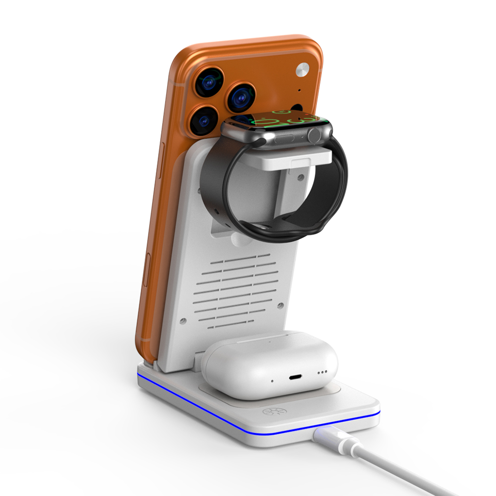 3IN1 고속 무선 거치형충전기 / 15W 고속 무선충전 / 듀얼코일 /폴더블 휴대용/ 3IN1 동시 충전 15W (스마트폰 무선충전 + 스마트워치(애플워치, 갤럭시워치) + 무선이어폰(에어팟, 갤럭시버즈) )/ 3015FWC