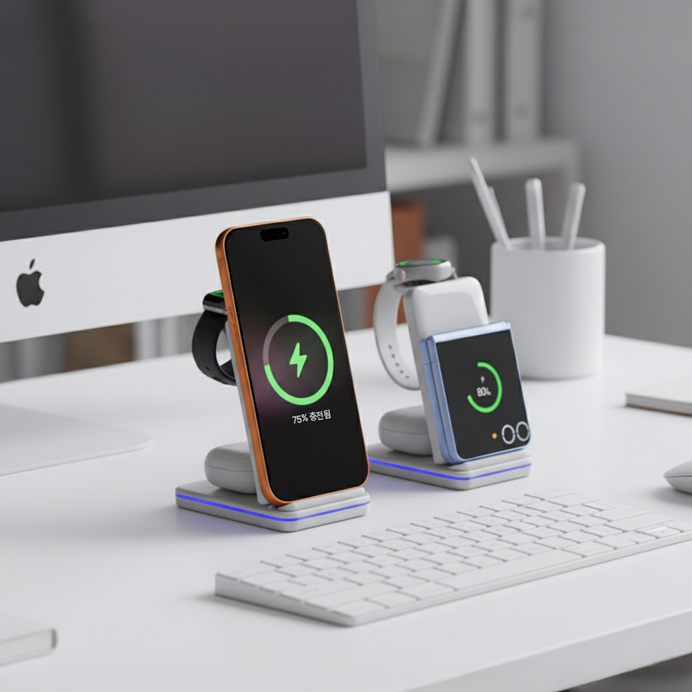 플러온 W1 무선충전 3in1 거치대 스마트폰 워치 무선이어폰