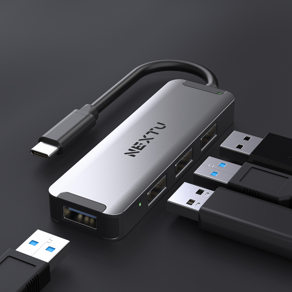 USB-C TO USB-A 3.0 4포트 알루미늄 무전원 USB허브 / 5Gpbs 전송속도 / 케이블 일체형(15cm) / Piug & Play 지원 / Hot Swap 지원