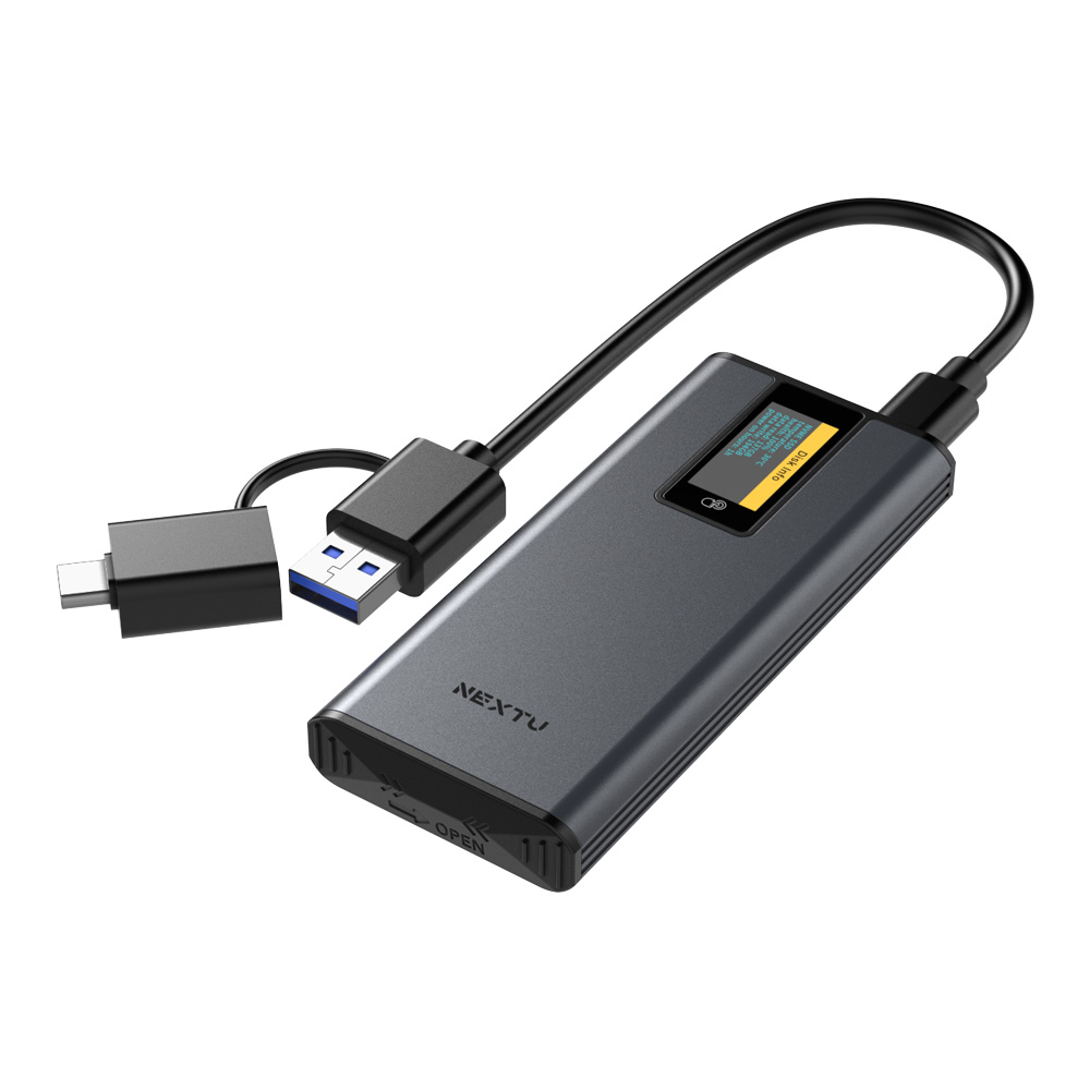 10Gbps Gen2 Type-C M.2 스마트 외장케이스 / LCD스크린으로 장착된 M.2 연결상태,용량,속도,파티션 정보 확인 가능 / NVMe , NGFF지원 / 최대 10Gbps 지원 / 알루미늄바디 /Tool-free / TRIP/UASP/SMART 지원 / M2351G2-COMBO