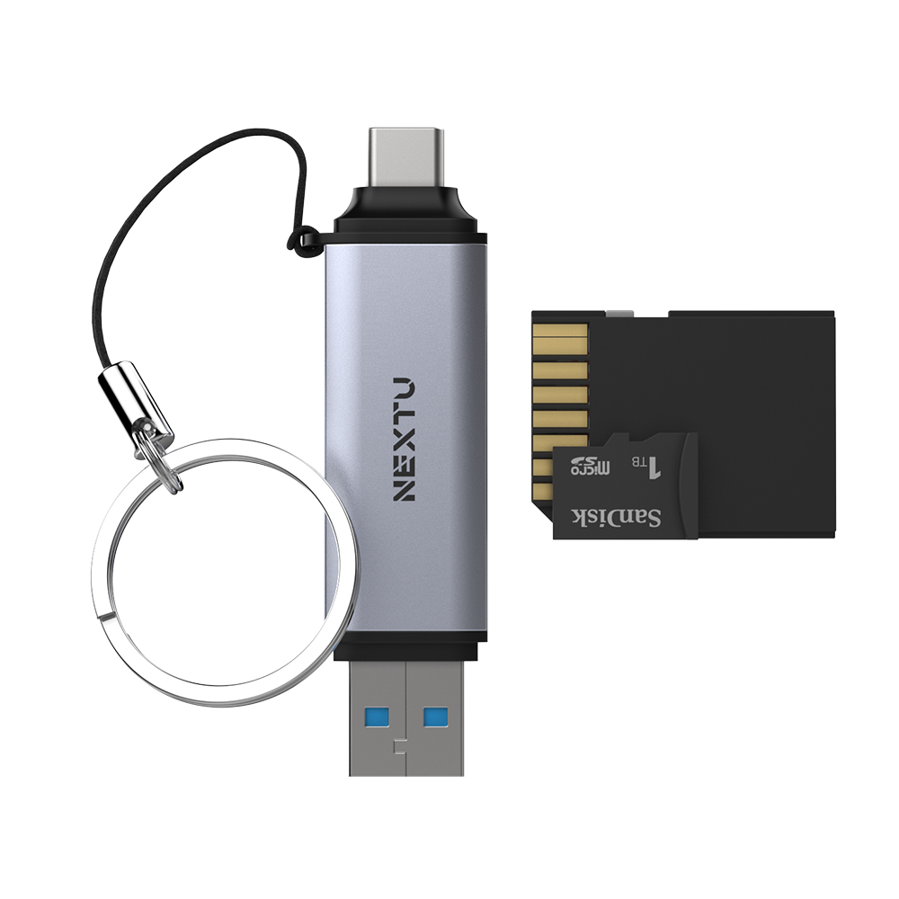 USB3.1 Type-C/USB-A 스틱형 휴대용 카드리더기 / SD, MicroSD 지원 /알루미늄 /휴대용 열쇠고리 홀 / 최대지원용량 2TB / Type-C 또는 USB-A포트로 연결가능