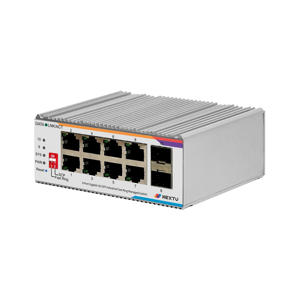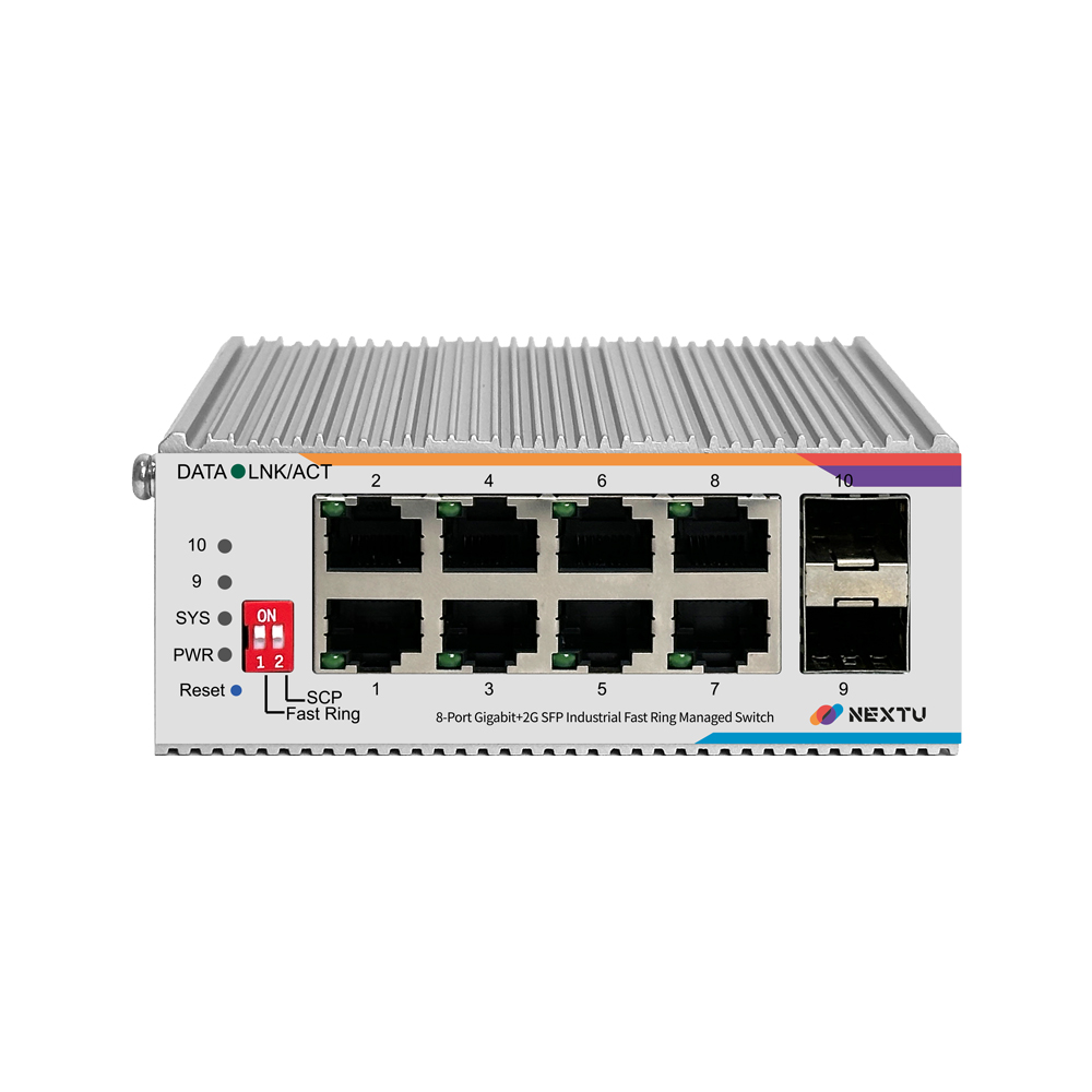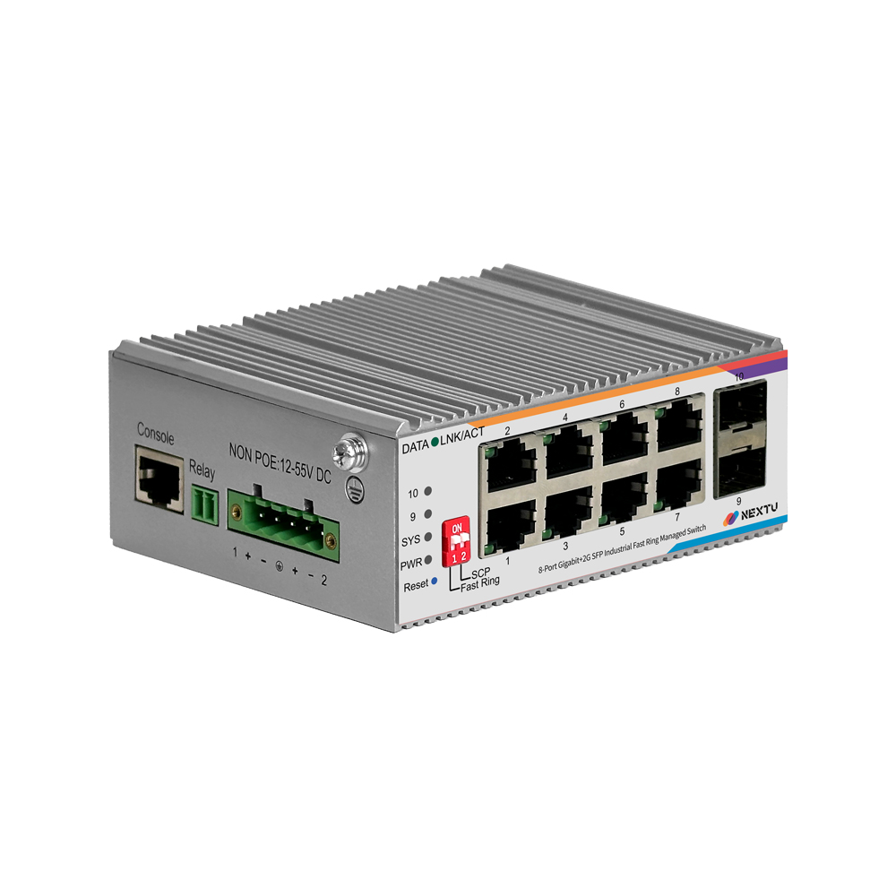 산업용 100M/1GX 2SFP + GbE 8TP Fiber Switch / 산업용 L2 매니지드/딥스위치(FAST RING, SCP) 링지원/ RSTP,ERPS,QOS,IGMP,ALC,VLAN,LACP 프로토콜 지원/ 듀얼 DC INPUT 12~55V DC, RJ45 x 8EA, SFP x 2EA