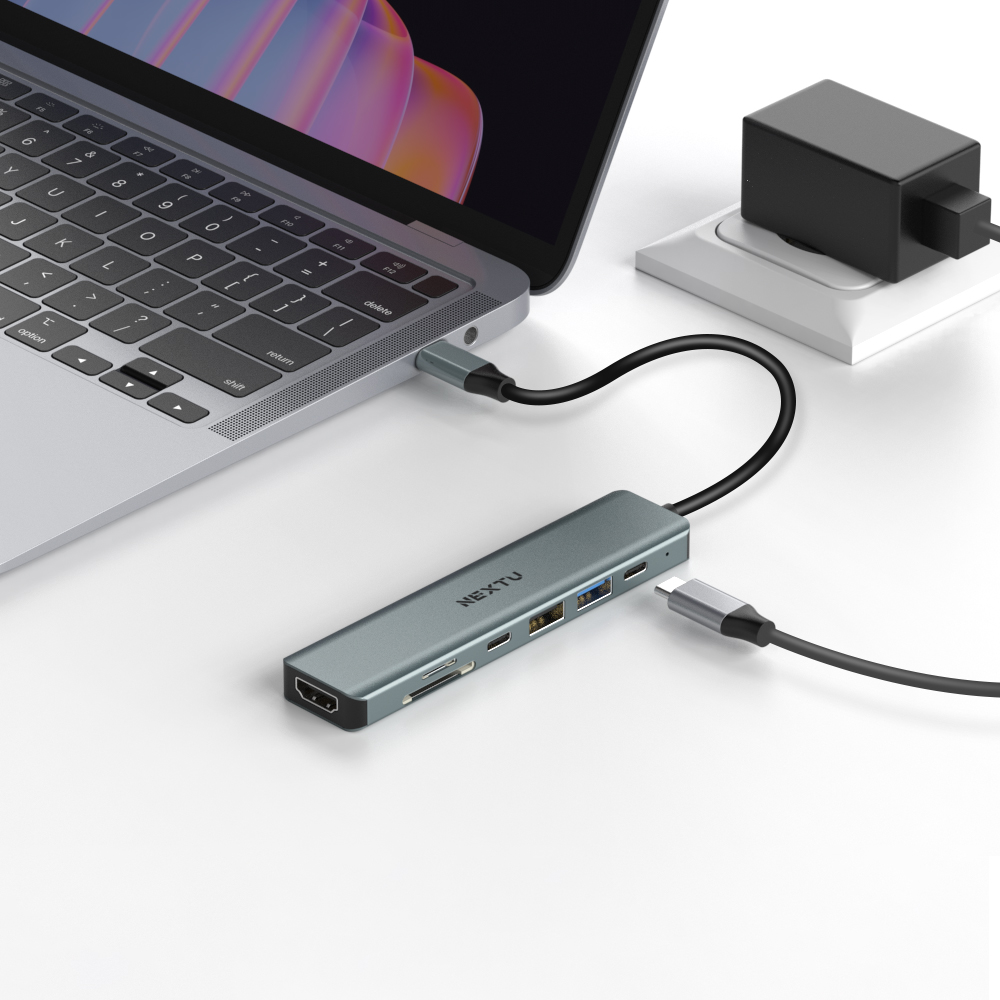 7 in 1 Type-C HDMI 다기능 멀티포트 어댑터 / 4K30 HDMI / USB HUB ( 2A+ 1C) / PD 3.0 100W지원/ SD / MicroSD / 하나의 멀티포트 어댑터로 디스플레이출력 . HUB 충전 까지 가능