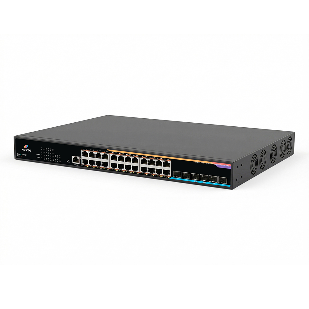 24포트 100/100/1000/2500Mbps + 1G/10G 6SFP+ / L3 매니지먼트 스위치/ 스위칭용량 128Gbps / L3 라우팅(Static, RIP, OSPF, BGP) / ERPS 링 보호 / LACP / SNMP / QoS / VLAN / DHCP Server 지원