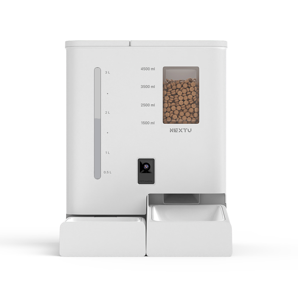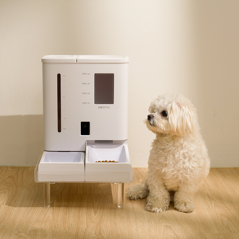 반려동물 올인원 스마트 자동급식기 급수기 / 듀얼 분리형 저장공간(사료 5L, 물탱크 4L) / 스마트폰 APP 원격 제어 및 실시간 카메라 모니터링 / 타이밍 피딩(정해진 시간에 자동 배식) / 앱을 통한 주인의 음성 스피커 기능 / 투명 사료 트레이로 내용물 확인 가능 / 식품 등급 멜라민 수지 및 ABS 소재 사용 무독성 식기 / 반려견, 반려묘