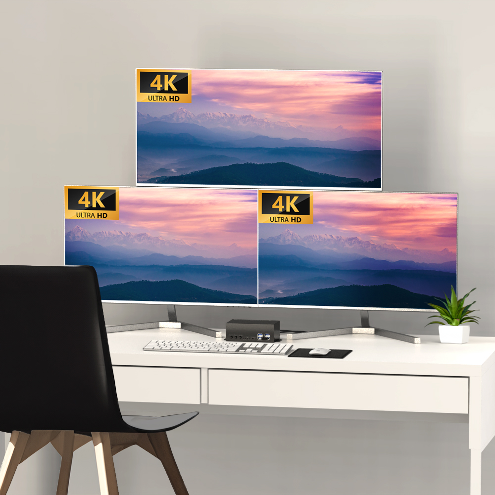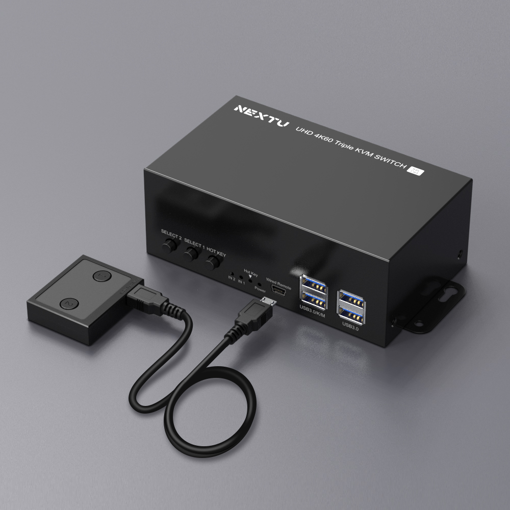 2:1 HDMI Triple KVM 스위치 with KEYPAD 2대의 트리플 모니터 PC 제어//USB3.0 2포트 허브 지원 / /4k 60Hz / 핫키 ON/OFF 지원 / 유선 키패드 지원 / 8943KVM-TRIPLE