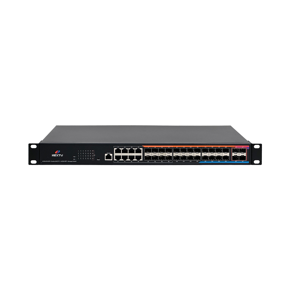 L3 24Port 100M/1GX SFP+ Combo 8Port 10/100/1000M TP + 4Port 10G SFP+ Managed 스위치허브 /1~24번 SFP 포트 100M /1G , 25~28번 SFP+ 10G(only) / MSTP(멀티링),RSTP ,OSPF,RIP, SNMP,QOS,VLAN,DHCP Server 기능 지원