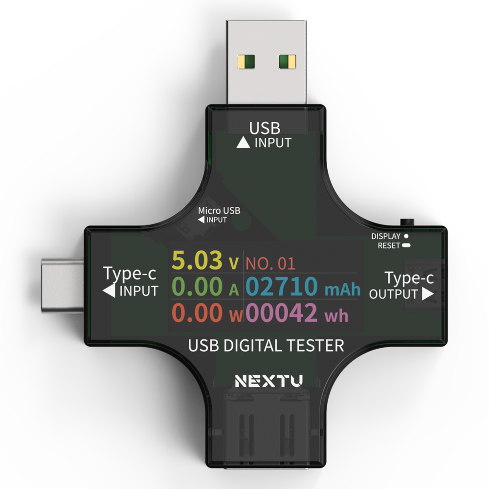 5in1 USB 전압/전류 테스터기 /USB-A/C/5P 타입 지원/ 전압,전류,소비전력,충전량,전력량을 확인/디지털 숫자 표기/고전압,저전압,고전류 방지 셋팅 모드 지원