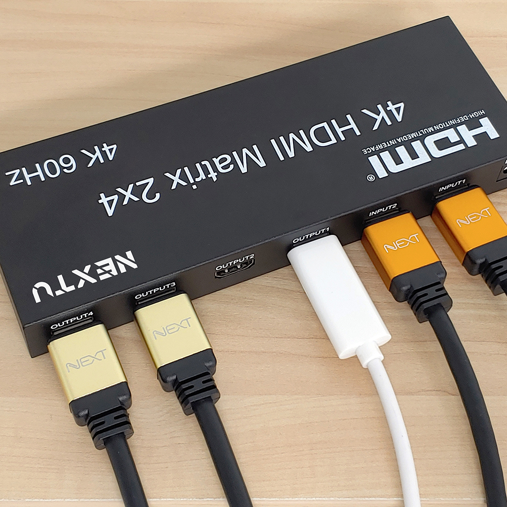 NEXT-4224UHDM-DS , 2x4 HDMI2.0 매트릭스 스위치 /4K60Hz /광(OPTICAL) out x1, 아날로그(AUX) out x1 /HDCP v2.2 /IR리모컨 /다운스케일링 /5.1ch /HDR