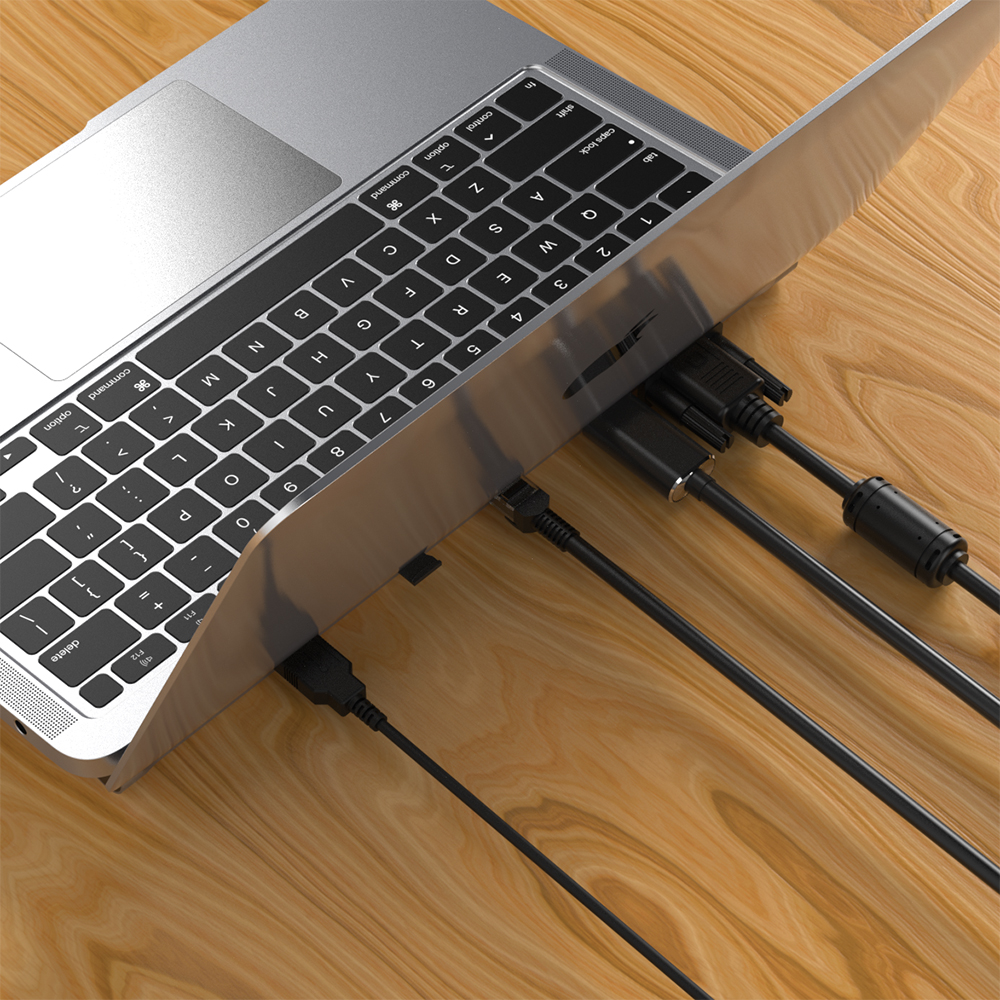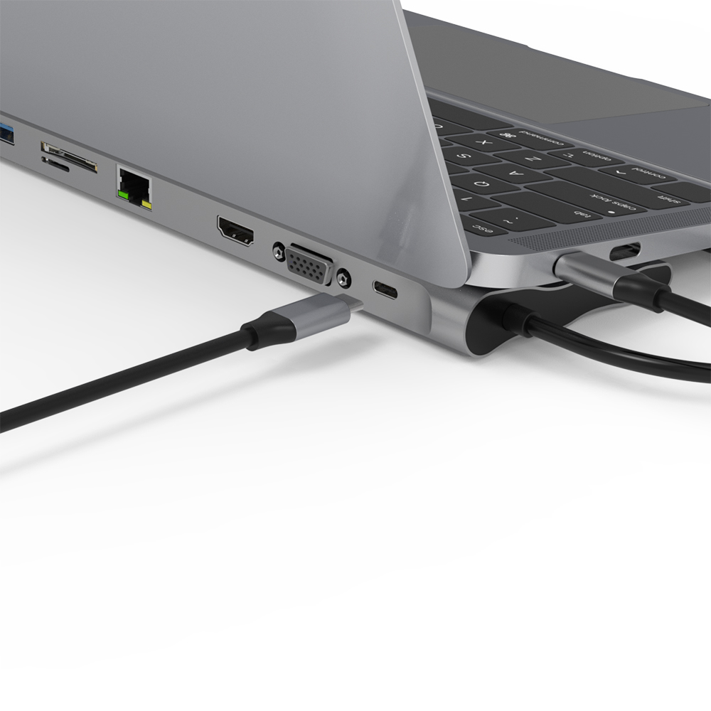 Type-C 11in1 HDMI/VGA 멀티허브 도킹스테이션 / 단독 HDMI 4K30 , VGA 1080P60 지원 / SST 지원 HDMI = VGA 화면 복제 ,동시 출력시 1080P=1080P 출력 / HDMI v1.4 /Audio OUT/ Gigabit LAN/ UAB-A (5G)/USB-C(5G)/PD 3.O(100W)/SD,microSD 지원/ 위아래 구분 없이 양방향 도킹 지원 가능