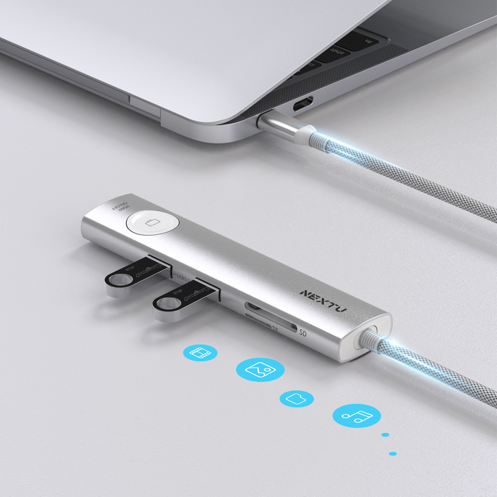 8 in1 USB-C타입 HDMI 온오프 멀티 허브 / HDMI v2.0 4K60/ USB-A(5G) X2P / USB-C(5G) X2P / SD2.0/MicroSD 2.0 / PD 3.0 (100W) / HDMI 영상+음향 온오프 버튼 지원