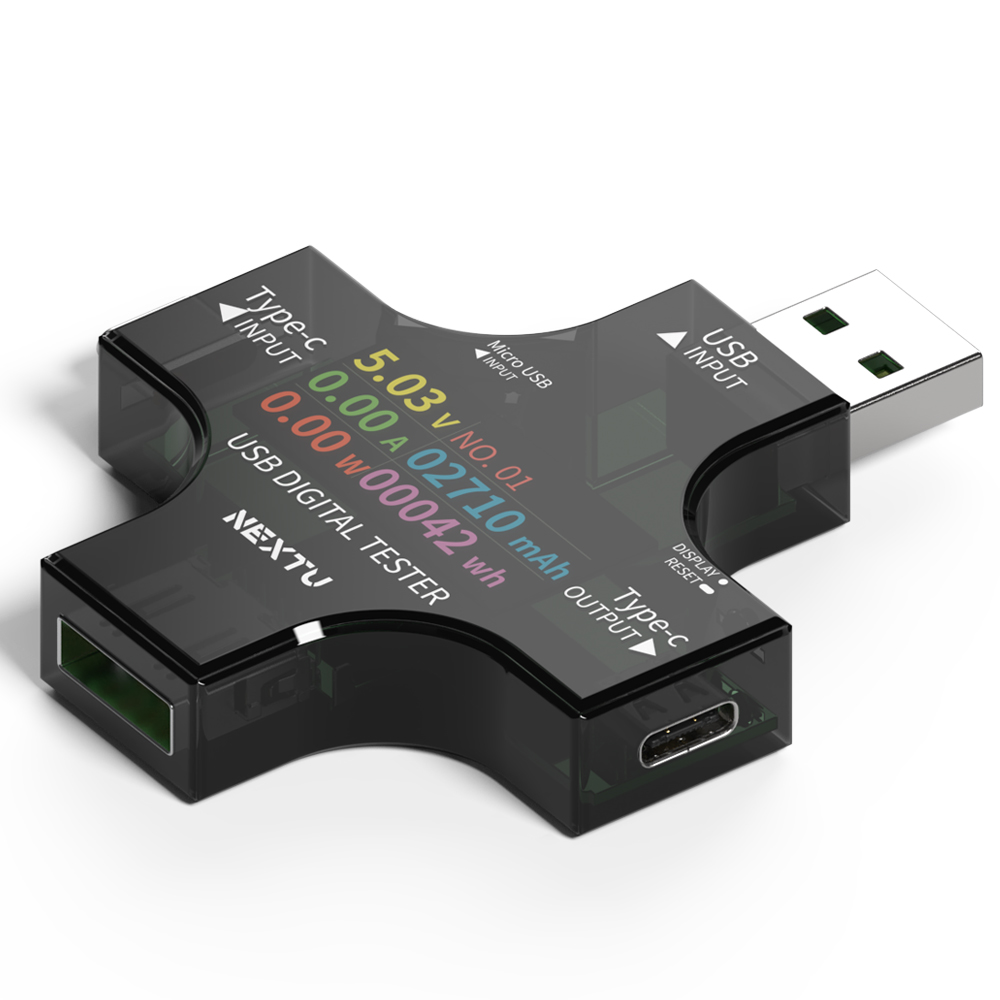 5in1 USB 전압/전류 테스터기 /USB-A/C/5P 타입 지원/ 전압,전류,소비전력,충전량,전력량을 확인/디지털 숫자 표기/고전압,저전압,고전류 방지 셋팅 모드 지원