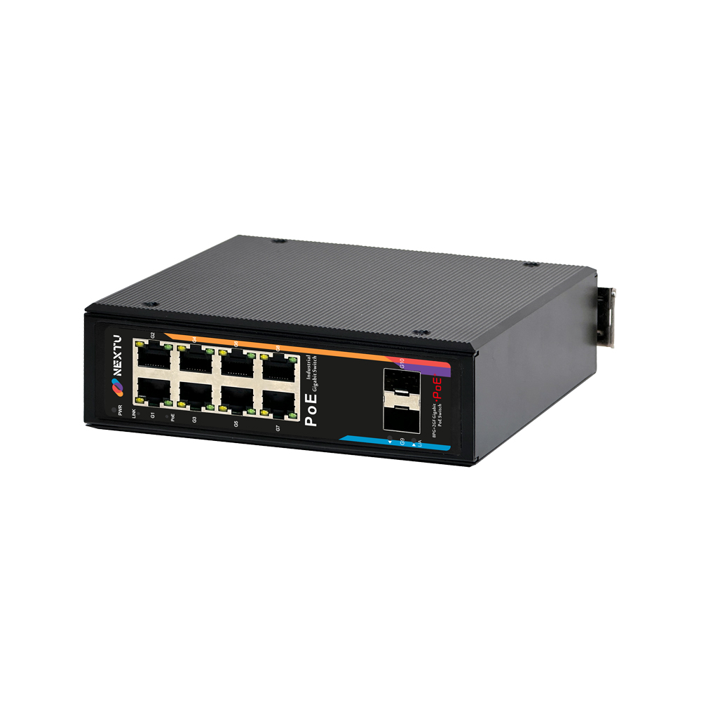 산업용 100M/1GX 2SFP + GbE 8TP POE Fiber Switch / 산업용 10/100/1000Mbps TP, 듀얼 DC INPUT 48~57V DC/ 802.3at 포트당 최대 30W POE / 총용량 240W / RJ45 x 8EA, SFP x 2EA , POE9528GDT