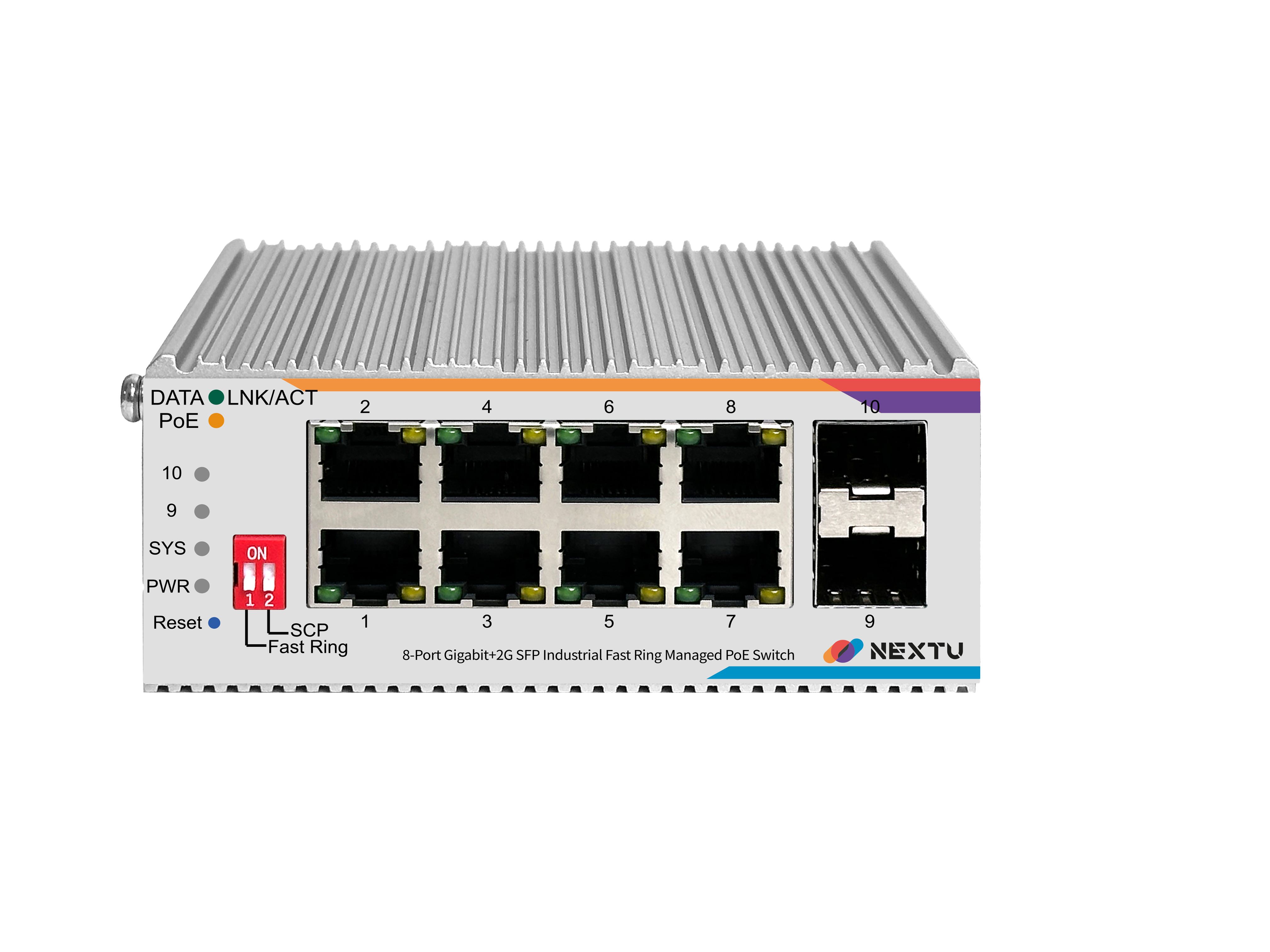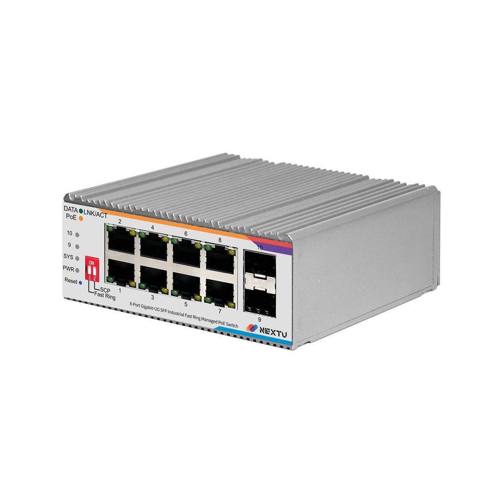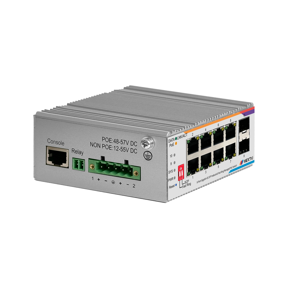 산업용 100M/1GX 2SFP + GbE 8TP Fiber Switch / 산업용 L2 매니지드/딥스위치(FAST RING, SCP) 링지원/ RSTP,ERPS,QOS,IGMP,ALC,VLAN,LACP 프로토콜 지원/ 듀얼 DC INPUT 48~57V DC/ 802.3at 포트당 최대 30W POE / 총용량 120W / RJ45 x 8EA, SFP x 2EA , POE9728MDTL2