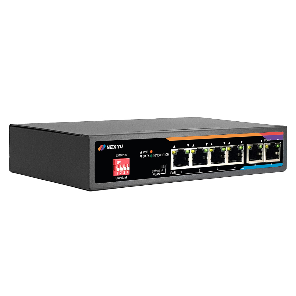 NEXT POE6006GF 60 4-Port 10/100/1000T POE + 2-Port 10/100/1000T Gigabit Switch 60WNEXT POE6006GF-60